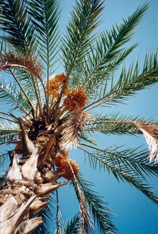 Η Χουρμαδιά φυτρώνει σε οάσεις στο όρος Σινά και στα θερμότερα μέρη της Παλαιστίνης. Είναι ένα ψηλό δέντρο με ίσιο κορμό, που στην κορυφή του έχει μια φούντα από τεράστια φύλλα. Ο φοίνικας ήταν από τα εθνικά σύμβολατου Ισραήλ. Όταν ο Ιησούς μπαίνει θριαμβευτικά στα Ιεροσόλυμα, πήραν τα κλαδιά από τις φοινικιές, και βγήκαν σε προϋπάντηση Του. ( Ιωάννης 12/12-13 ) |